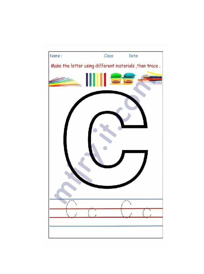 منهج متكامل لتنمية مهارة الكتابة عند الطفل يحتوي على أنشطة ممتعة ومشوقة لتكوين وتلوين وكتابة الحرف بطريقة متدرجة وممتعة . كل ورقة عمل تحتوي على خانة للإسم والتاريخ والصف واوراق عمل علاجية وإثرائية و أوراق عمل مشوقة لتمييز الحرف .